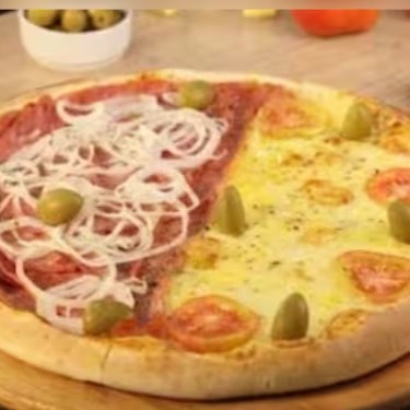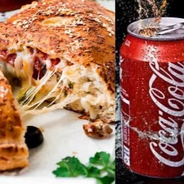 Molho de tomate, mussarela, calabresa, Catupiry, cebola, azeitona e orégano + Refri Kuat