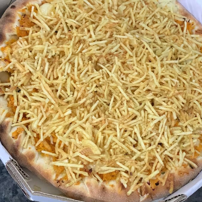 Este prato é uma exuberante Pizza P de Frango com Creme de Milho, uma verdadeira estrela entre os nossos ** Campeões de Venda **. Composta por quatro substanciosos pedaços, esta deliciosa pizza traz uma generosa camada de um autêntico molho de tomate caseiro, coberto por uma fusão harmoniosa de queijo mussarela e Catupiry cremoso. O frango suculento se une perfeitamente ao adocicado creme de milho, proporcionando um equilíbrio de sabores inigualável. Para completar, uma leve camada de batata palha crocante adiciona um contraste textural interessante, enquanto a azeitona e um toque de orégano trazem um agradável frescor ao prato. Uma pizza verdadeiramente irresistível!