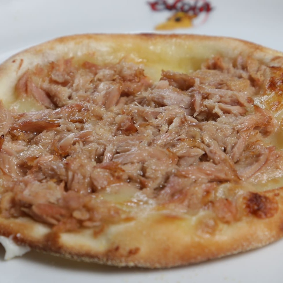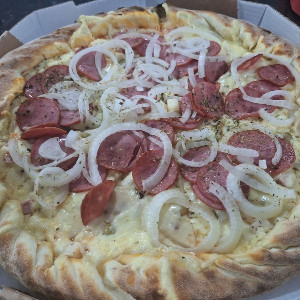 Muçarela, atum e cebola, acentuada com orégano, criando uma experiência de sabor única e irresistível.