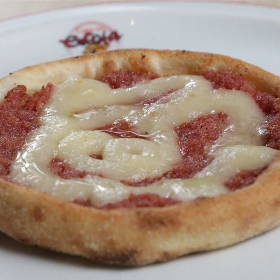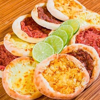 Esfiha aberta com calabresa moída e Catupiry, trazendo um sabor robusto e cremoso.