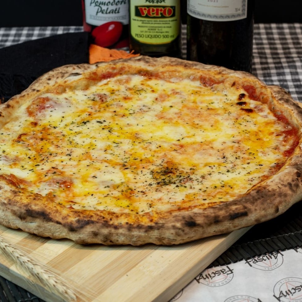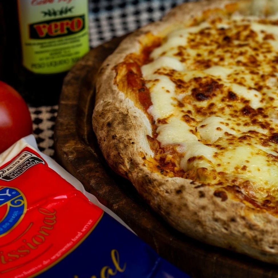 Molho de tomate Italiano, muçarela, gorgonzola, Catupiry Original e parmesão + um delicioso vinho