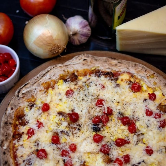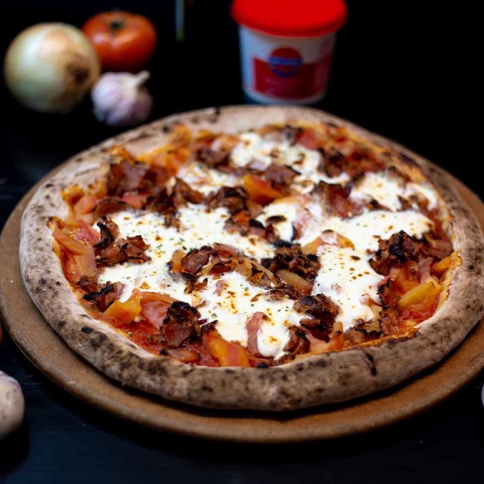 Molho de tomate Italiano,muçarela panceta especial em cubos, pimenta biquinho, ovos ,parmesão fresco e pimento do reino. Acompanha uma Coca Cola de 2l geladinha!