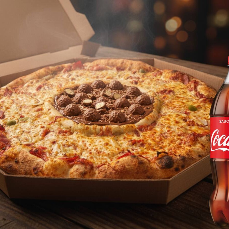 Pizza 20 Fatias: Calabresa + Frango C Cheddar + Cupim + Due Chocolate + Coca 2l