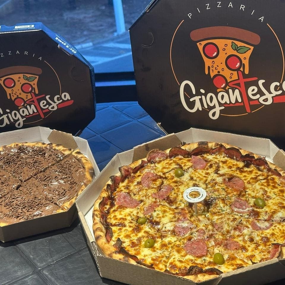 Pizza Gigantesca de 20 fatias (aprox. 58cm) com até 4 sabores à sua escolha! Massa especial da casa, recheio generoso e sabor irresistível. Ideal para compartilhar com a família ou amigos. Peça agora e surpreenda no sabor! Entrega rápida e quentinha! -------tags-------- Pizzas Gigantesca , Massas na Caixa , Promoções , Oferta, Cupom , Menor preço , Desconto , Tempo de entrega , Taxa grátis , macarrão , quentinha , ideal para a familia