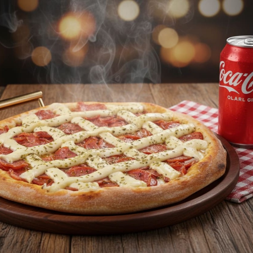 Deliciosa Pizza Individual de 4 fatias + Coca lata -------tags------- Pizza Gigantesca , Massa na Caixa , Promoções, Oferta , Cupom , Menor preço , Desconto , Tempo de entrega , Taxa grátis , kit festa , pizza gigante , combos economicos