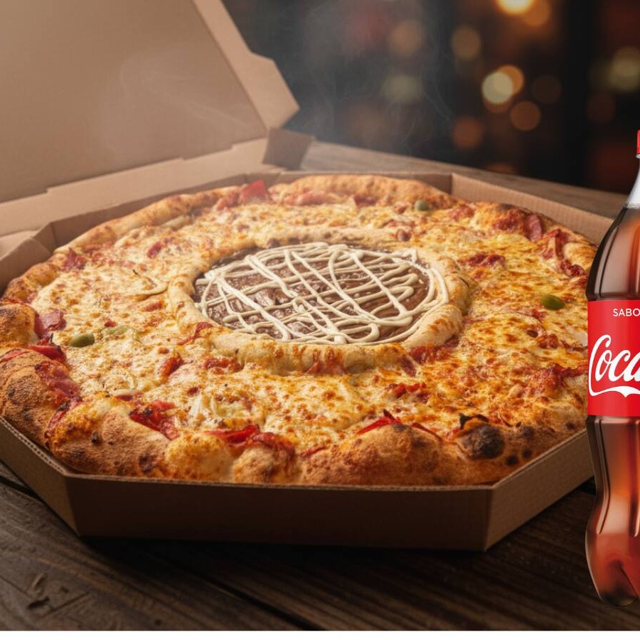 Pizza 20 Fatias: Portuga, Bacon, Carne Seca, Ouro Branco + Coca 2l