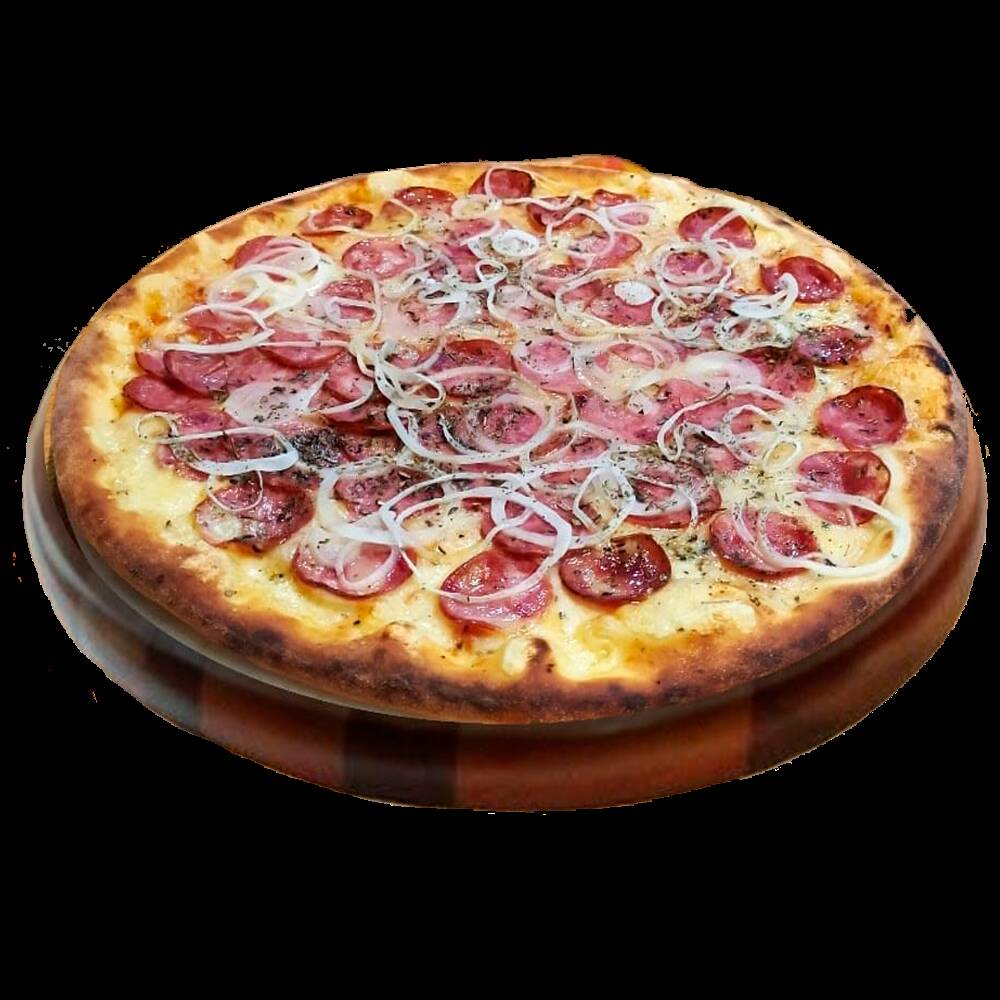 Pizza Gigante de 20 fatias sabor Calabresa Acebolada! Massa artesanal leve e crocante, molho especial da casa e calabresa com cebola dourada no ponto certo. Sabor intenso e irresistível para compartilhar!