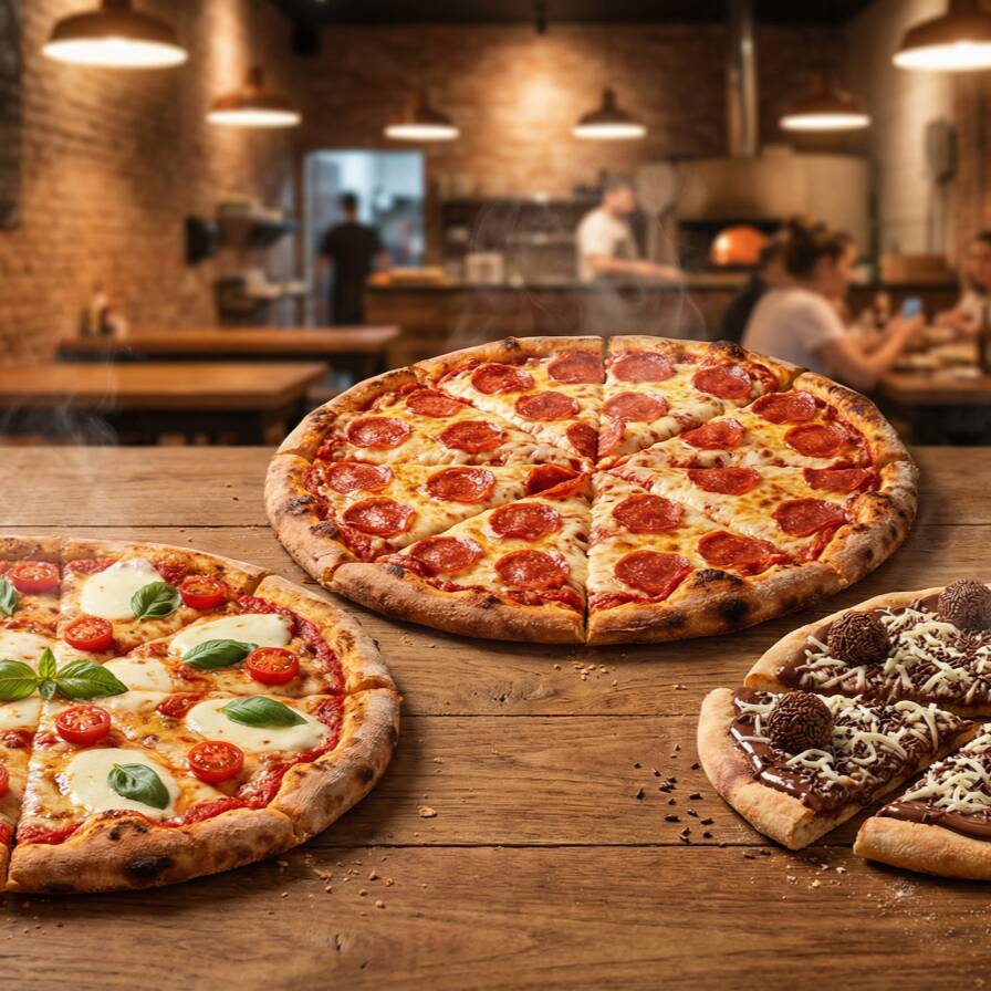 Pizza (20 Fatias) + Brinde! (broto Doce Brigadeiro)
