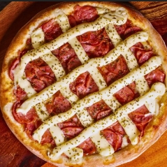 Massa Artesanal, Molho De Tomate, Muçarela, Calabresa Com Cheddar+ Guaraná Antárctica 2 litros