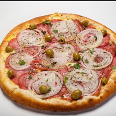 (Molho de Tomate , Presunto, Milho, Calabresa, Tomate, Ovo e Muçarela) +