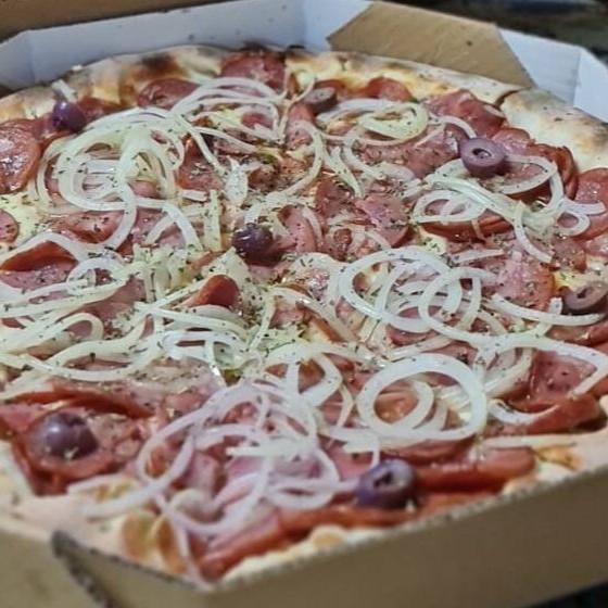 Molho de tomate ,muçarela, calabresa, cebola,o régano e azeitona Pizzaria Nazionale