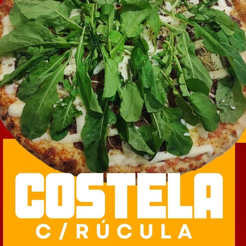 Mollho de tomate , mussarela ,costela desfiada , cebola , Catupiry e rucúla