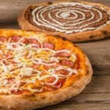 Escolha o sabor da sua pizza grande (8 pedaços) + pizza broto doce
