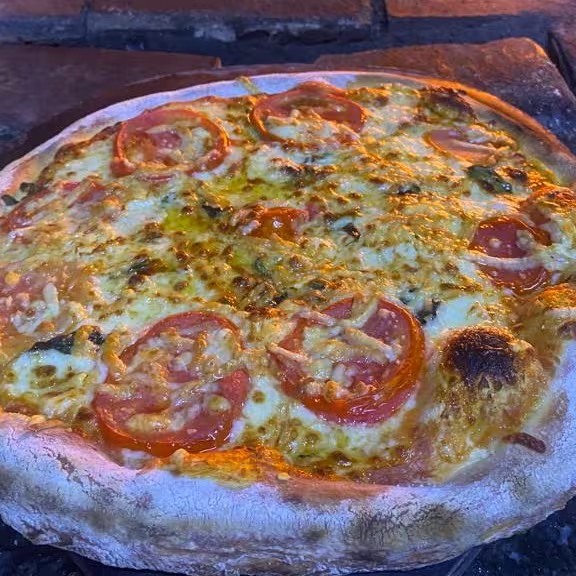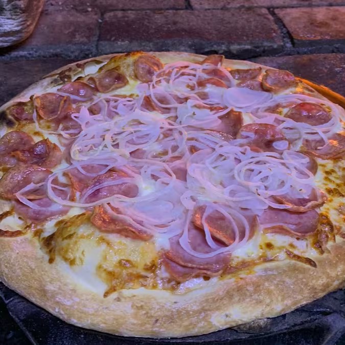 Calabresa fatiada, molho de Tomate, e Cebola( obs sem Mussarela)