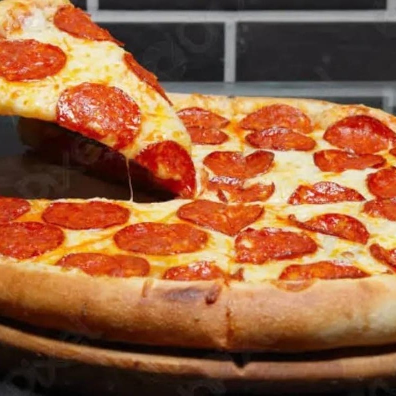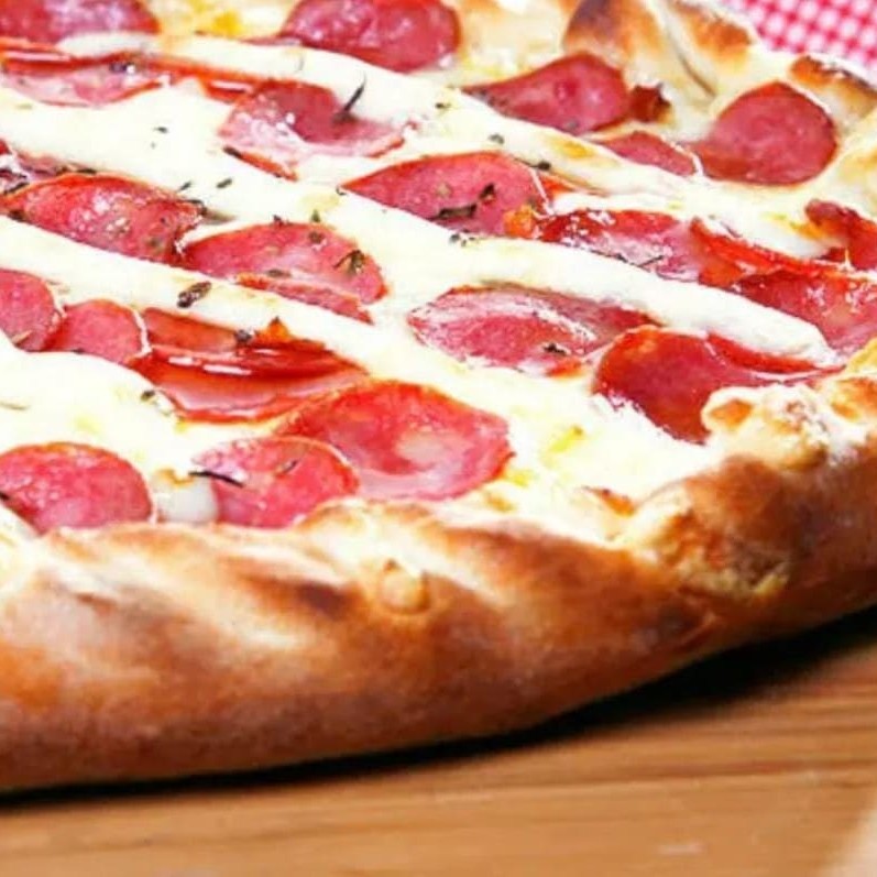 Massa de longa fermentação com farinha italiana, molho de tomates italianos selecionados, queijo muçarela, Pepperoni + refri 2l