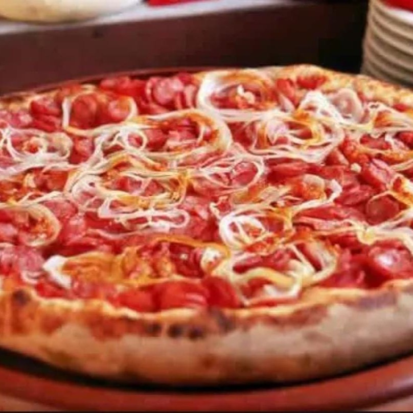 Massa de longa fermentação com farinha italiana, molho de tomates italianos selecionados, queijo muçarela, calabresa, cebola, finalizado com orégano.