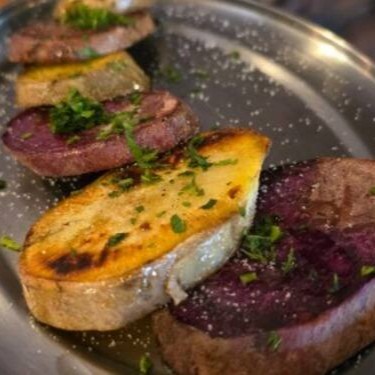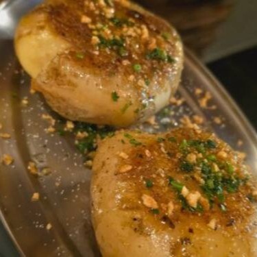 Batatas cuidadosamente selecionadas são assadas na parrilla, um método autêntico que ressalta os sabores naturais e proporciona uma textura única. Finalizadas com uma pitada de alho frito para dar um toque crocante e uma nota de salsa fresca, concedendo um aroma inconfundível e uma explosão de sabor a cada mordida. Ideal para quem aprecia simplicidade com sofisticação.