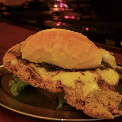 Um classico da parrilla, este sanduiche é feito com um pão francês crocante, recheado com um generoso filet mignon empanado de 175g, coberto com a autêntica e cremosa maionese da casa. Além disso, conta com uma fatia de queijo derretido, pedaços de bacon crocante, uma camada fresca de alface, rodelas de cebola roxa suavemente picantes e fatias de tomate suculento. Para finalizar chimichurri, que adiciona um sabor especial.