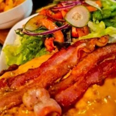 A 'Milanga' é um sanduíche sem pão, um generoso filet mignon empanado e frito (250g peso in natura), cuidadosamente preparado para ter um exterior crocante e um interior suculento. É coberto com uma salsa parrilleira , queijo derretido e fatias de bacon crocante para um toque extra de sabor. Acompanha um mix de alface fresca, tomate suculento e cebola roxa para um contraste refrescante. Para completar, o prato vem servido com papas fritas polvilhadas com páprica, que conferem uma pitada de tempero ao prato.