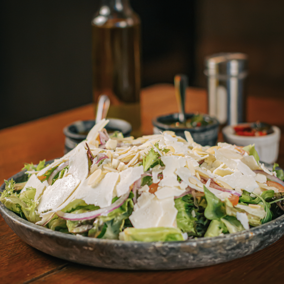 Ensalada a la Palermo este prato de acompanhamento luxuoso consiste num mix harmonioso de folhas verdes frescas, tomates suculentos e cebola roxa crocante, todos cuidadosamente selecionados. A adição de lascas de queijo da canastra da famosa queijaria Capim Canastra eleva o sabor, enquanto as amêndoas laminadas contribuem para uma textura crocante e irresistível. Para finalizar, um molho delicado à base de mostarda e mel, que adiciona um toque doce e picante para aperfeiçoar este prato. Uma verdadeira experiência para o paladar, inspirada na tradicional cozinha de Palermo.
