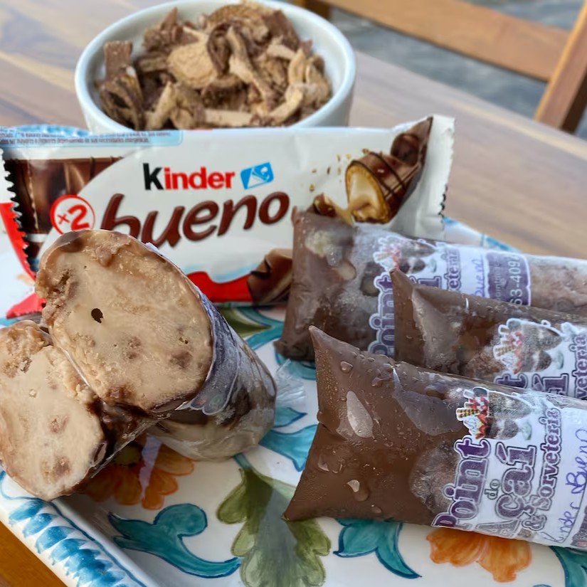 Contém pedaços de Kinder Bueno tradicional, creme de avelã e uma base de Kinder maravilhosa.