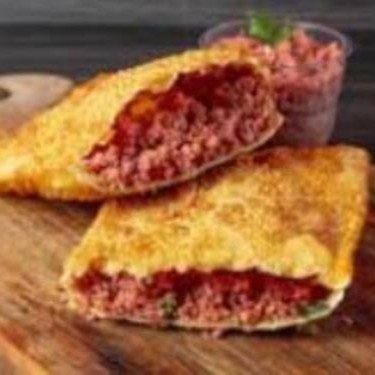 Carne moída, queijo mussarela e azeitona.