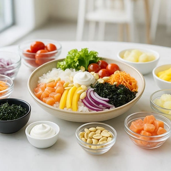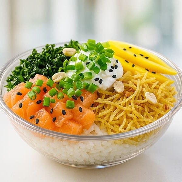 Monte seu poke com seus ingredientes favoritos e aproveite a explosão de sabores.