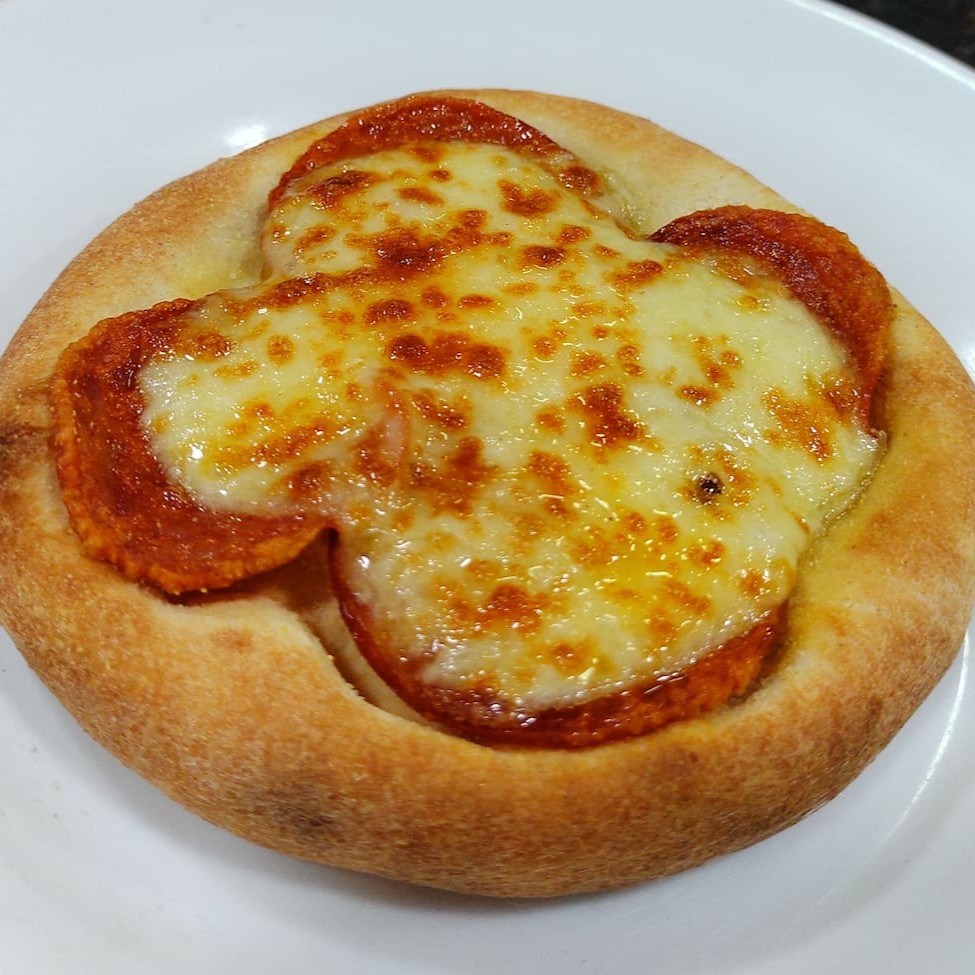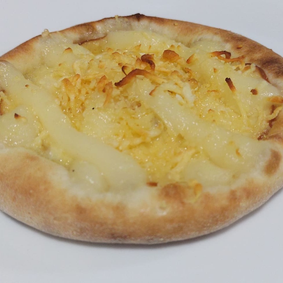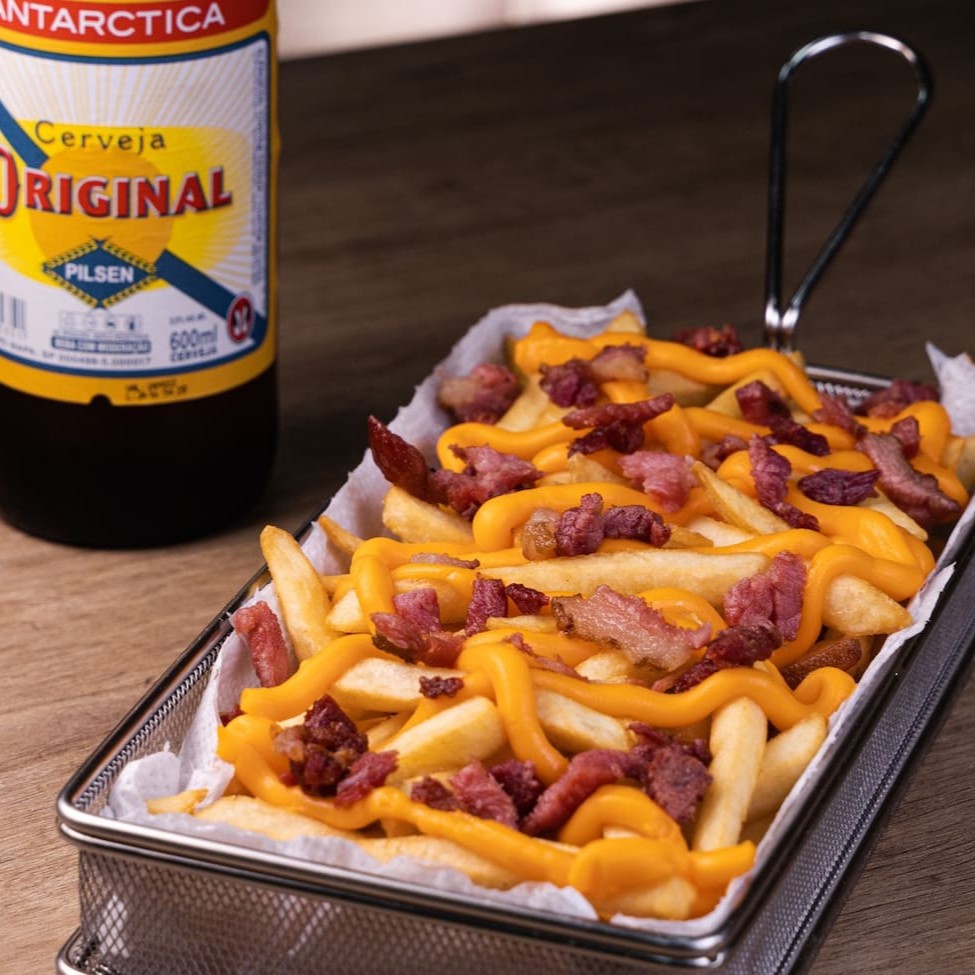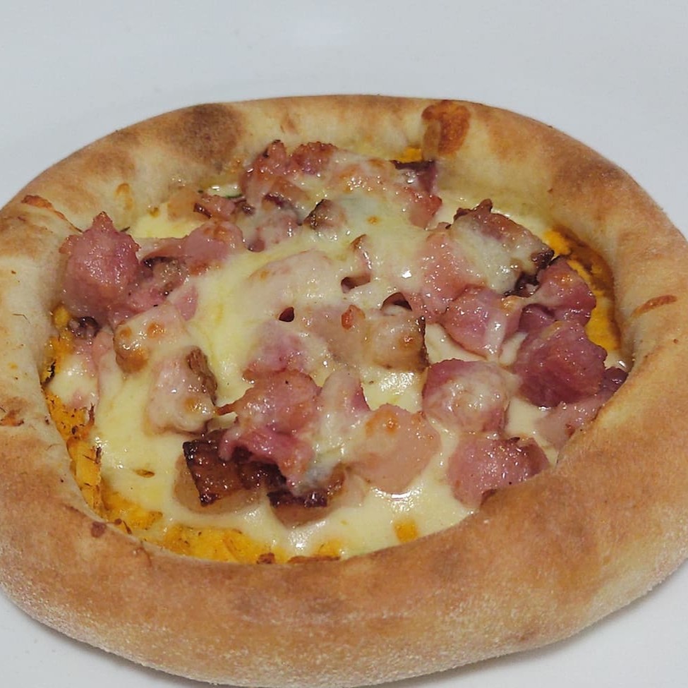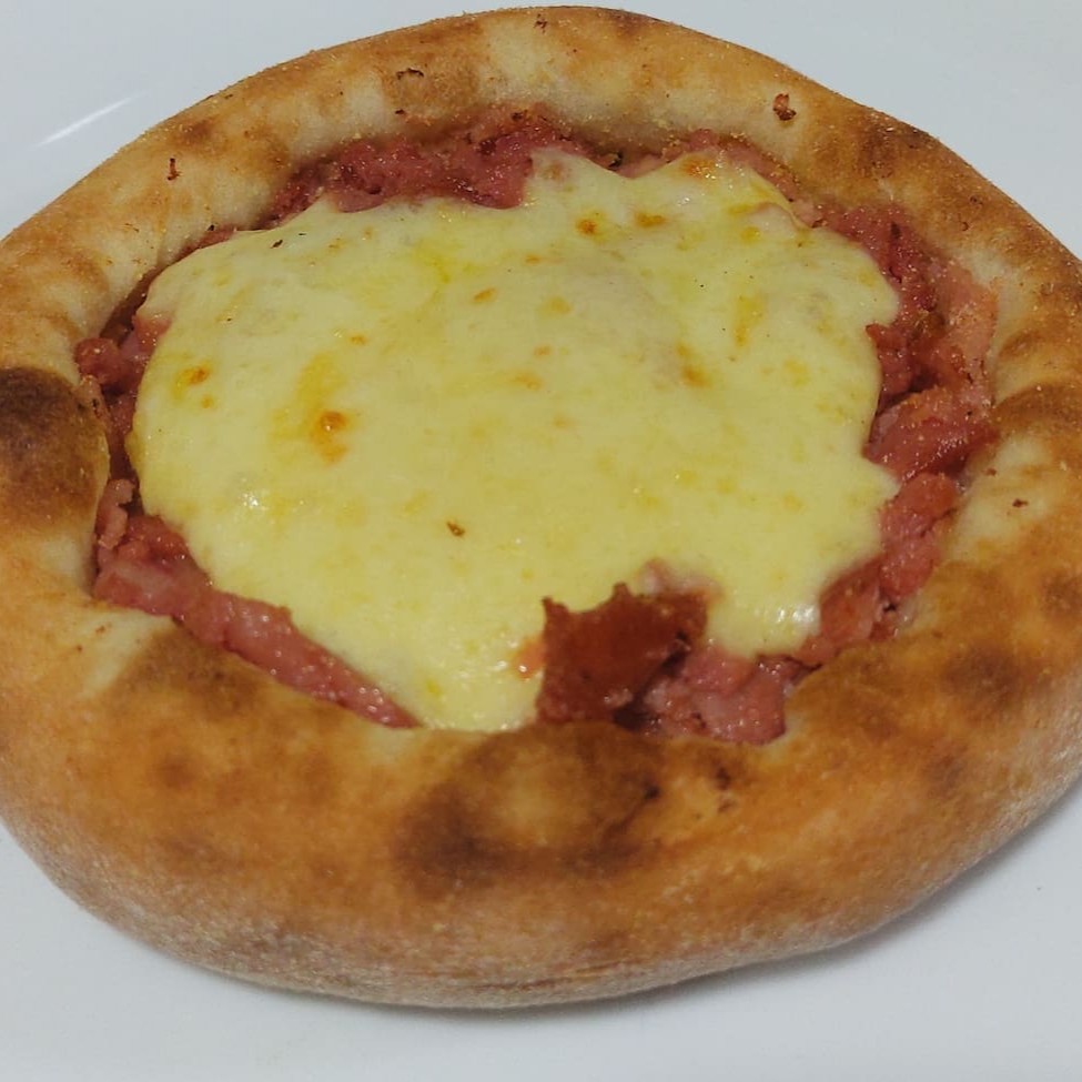 Calabresa moída, queijo Mussarela e Bacon frito.