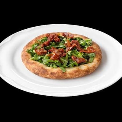 Queijo mussarela com rúcula refogada, orégano e azeitonas.