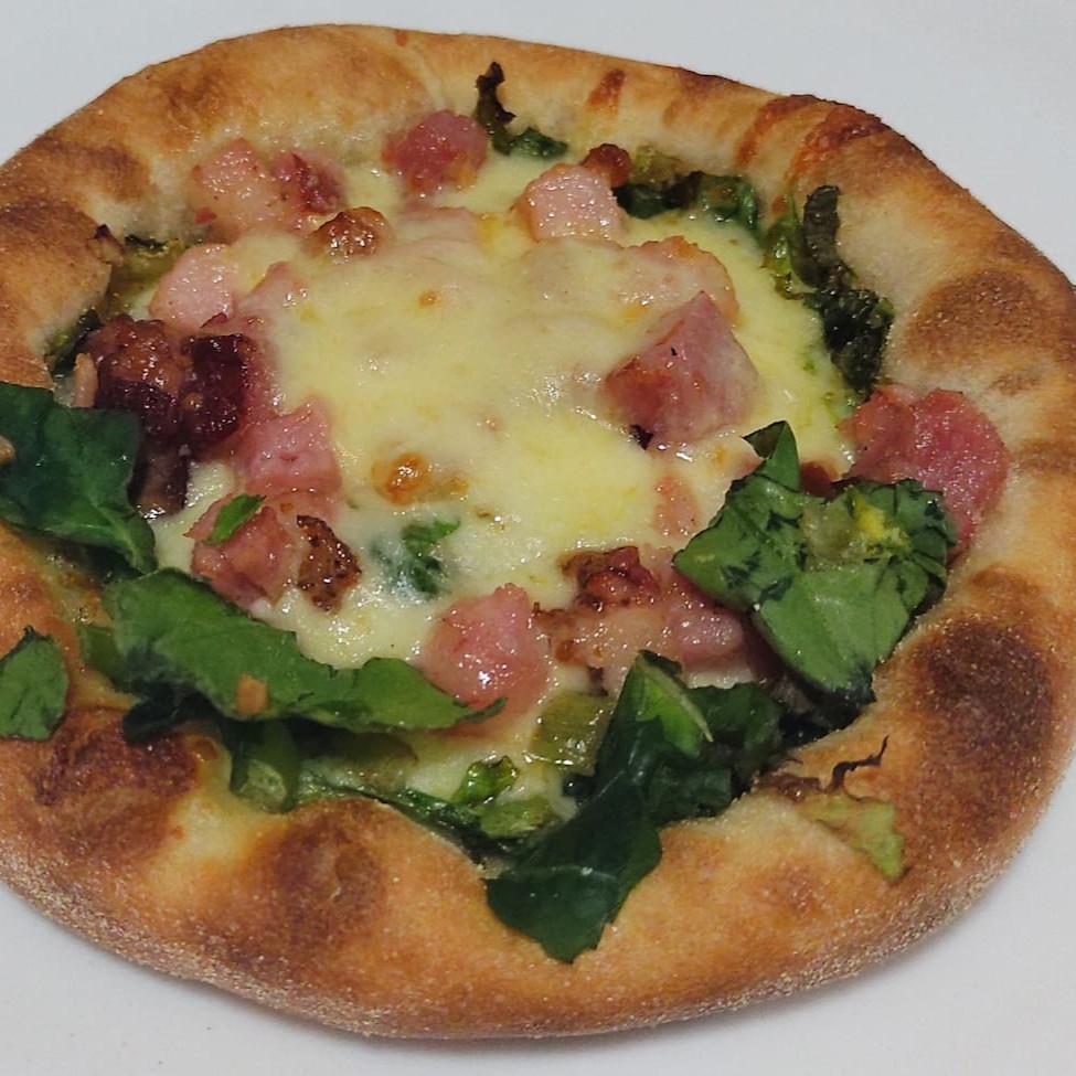 Escarola refogada ,queijo mussarela e Bacon frito.