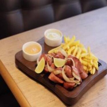 Batatas fritas e calabresa acebolada