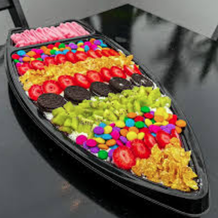 acompanha. banana, morango, leite condensado, leite em pó, confete, paçoca e granola