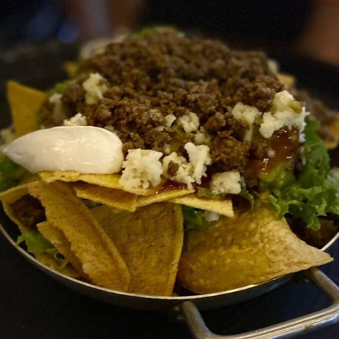 100g de massa de milho, carne, mussarela, sourcream, guacamole e molho de pimenta da casa.