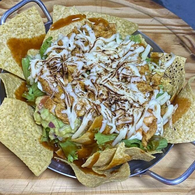 100g de massa de milho, frango, mussarela, sourcream, guacamole e molho de pimenta da casa.