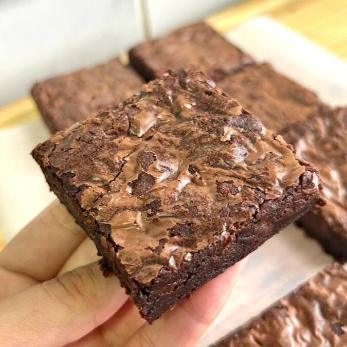Brownie intenso de chocolate, cremoso e com casquinha. As gotas de chocolate nobre derretem na boca, deixando cada pedaço ainda mais especial. (tamanho 6x6)