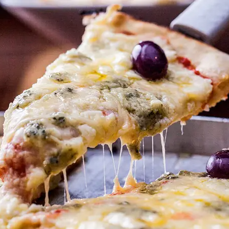 Saborosa pizza com frango desfiado e requeijao,mucarela,azeitonas, finalizada com orégano.