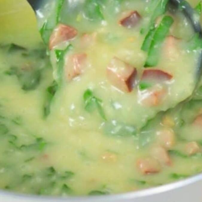 Base do Caldo: Batata, temperos frescos, Couve e Calabresa.