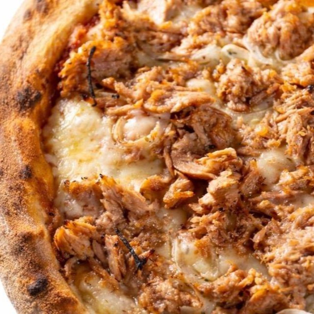 Deliciosa pizza grande com 8 fatias de Atum - Massa, molho, mussarela, atum, cebola marinada