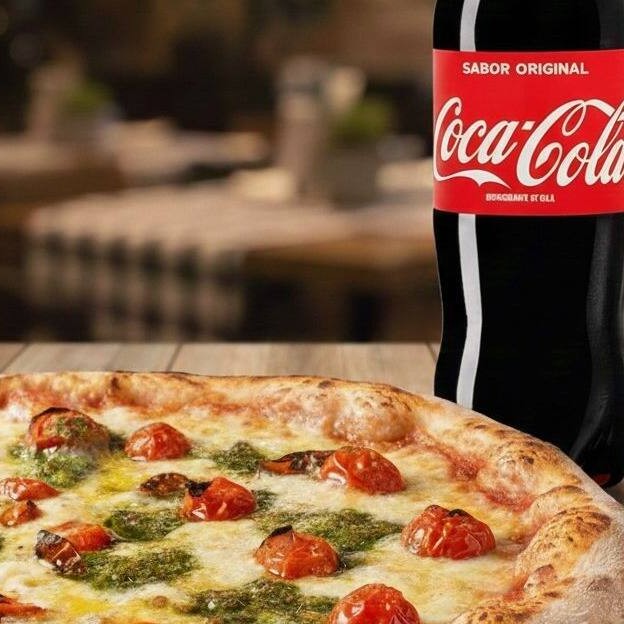Super combo com uma deliciosa pizza grande de 8 fatias e uma Coca Cola de 2 litros geladíssima.