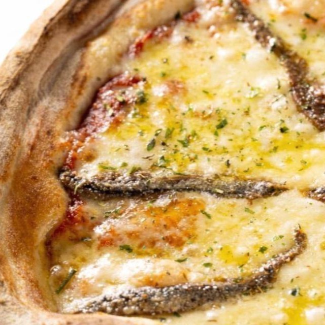 Deliciosa pizza grande com 8 fatias de aliche - Massa, molho, mussarela, aliche importado e parmesão