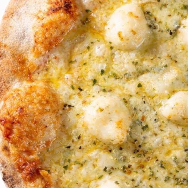 Deliciosa pizza grande com 8 fatias de Quatro Queijos - Massa, molho de tomate, mussarela derretida, gorgonzola, provolone e Catupiry.