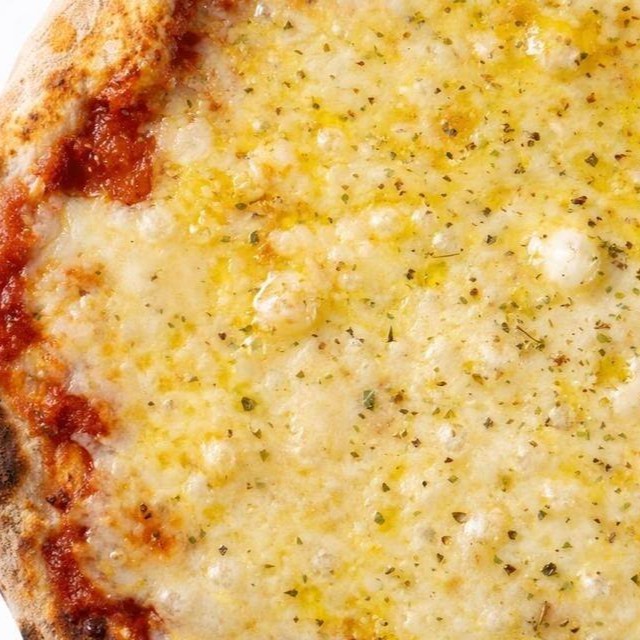 Deliciosa pizza grande com 8 fatias de Mussarela - Massa, molho de tomate, mussarela derretida, orégano e azeite especial Prosa.