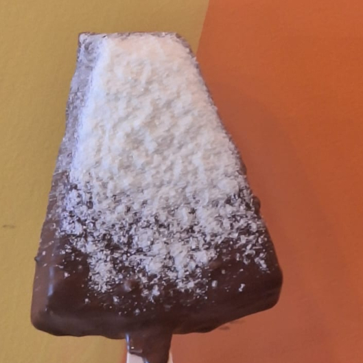 Pensa uma sensação do verão, pudim no palito. Pudim de sensação transformado em sorvete e finalizado com uma crosta de chocolate meio amargo.