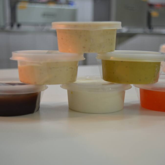 Polpa de tomate, pimenta, polpa de mostarda, açucar, cebola e alho.