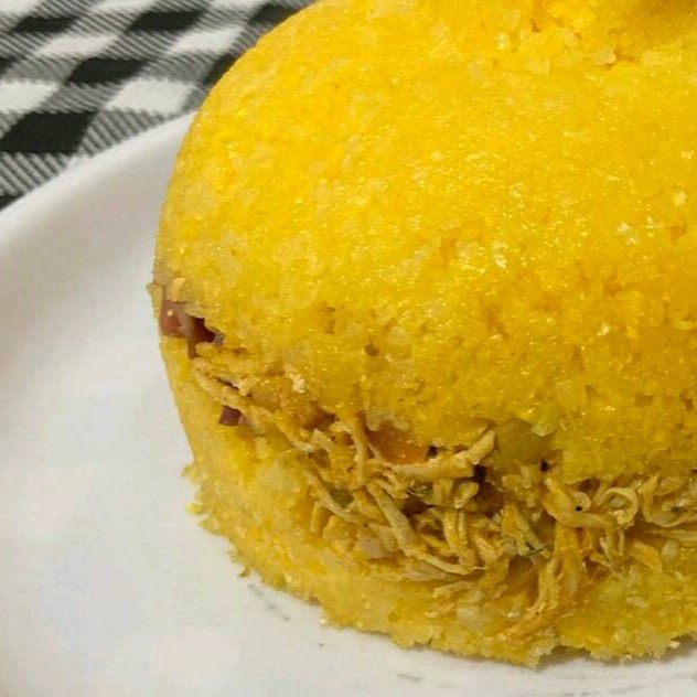 Cuscuz de frango, queijo e acompanha vinagrete