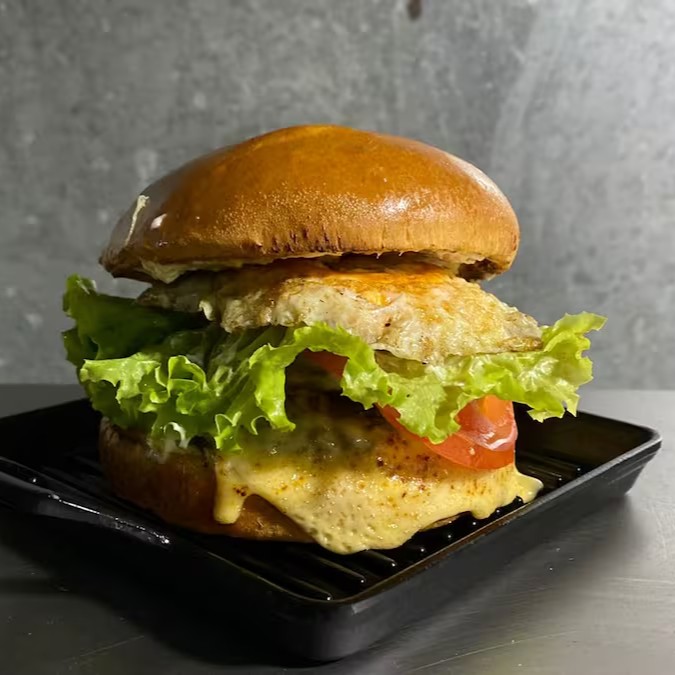 Pão de brioche, hamburguer artesanal 160g, queijo prato , alface, tomate, ovo e molho especial.