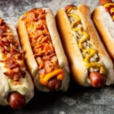 Delicioso Hot Dog Duplo Gratinado + Pão + 2 salsicha + milho + vinagrete + purê de Batata + batata palha + Katchup + maionese + mostarda + muçarela por cima para gratinar.