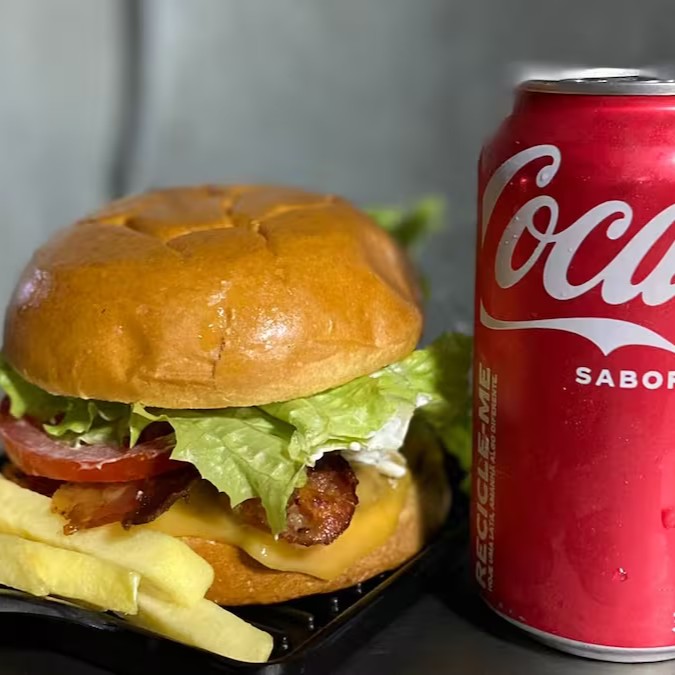 Pão de brioche, blend de hambúrguer smash 100 gramas, cheddar, bacon e finalizado com uma deliciosa maionese temperada e defumada acompanhado de uma Lata + Batata Pequena.