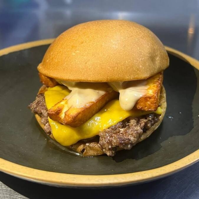 Pão Brioche, Burguer, Queijo Cheddar, Queijo Coalho, Maionese Heinz.