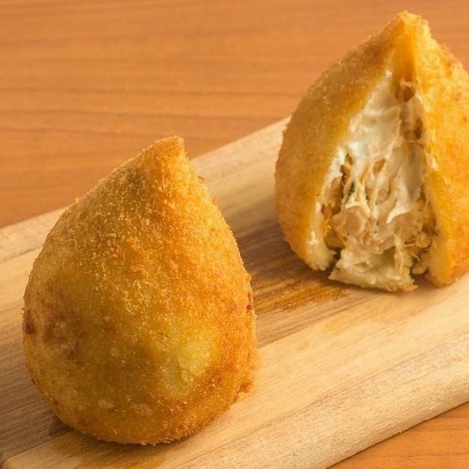 A famosa e deliciosa coxinha massa de mandioca ,recheada de frango com provolone.